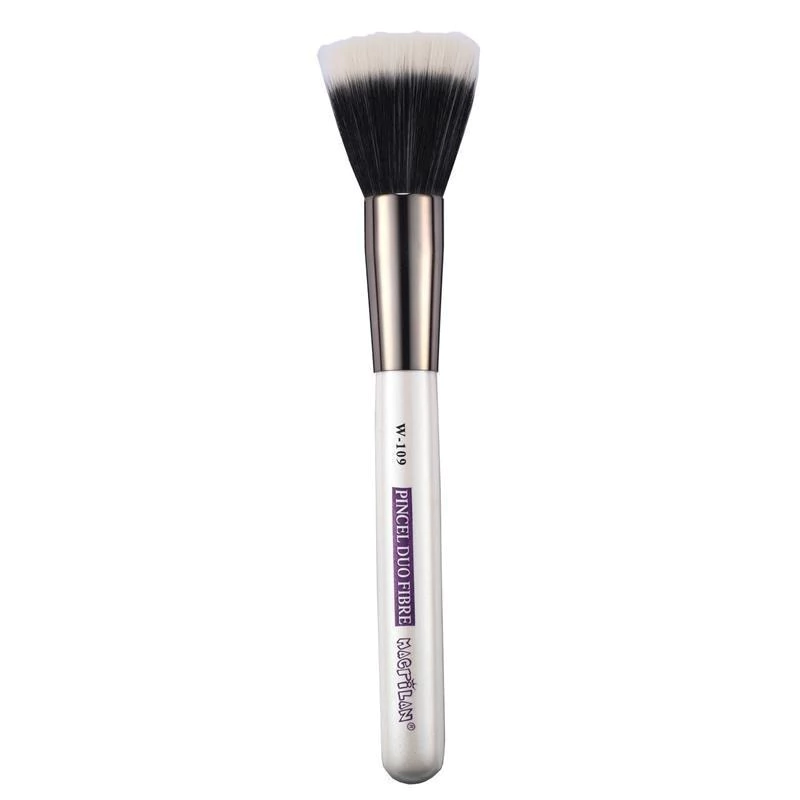 Pincel Macrilan O109 especialmente desenvolvido para aplicação de blush em pó ou cremoso, pó facial, base líquida, base bronzeadora e iluminador. Também pode ser utilizado para acabamento e polimento. Feito com dois tipos de cerdas sintéticas especiais para um acabamento suave e uma maquiagem impecável.